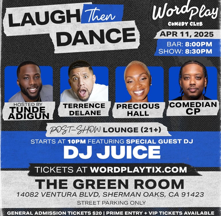 SOLD OUT 4/11/25 8:30PM Laugh Then Dance Comedy Show w/ Tunde Aidgun, Comedian CP, Terremce Delane + Precious Hall